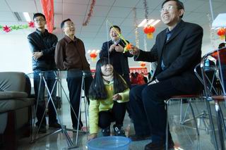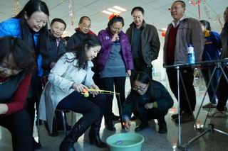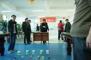 活動(dòng)現(xiàn)場(chǎng)張燈結(jié)彩,一片歡聲笑語(yǔ)。金鉤釣魚(yú)、好運(yùn)飛鏢、幸福圈套、隔桌吹蠟、快樂(lè)乒乓?jiàn)A、蒙眼摸鼻等六個(gè)貼近生活、充滿趣味的游藝項(xiàng)目,給廣大教職工奉獻(xiàn)了一頓豐富多彩的娛樂(lè)大餐。游藝中,有比技巧的,有比準(zhǔn)勁的,有比運(yùn)氣的……大家個(gè)個(gè)勁頭十足,一改往日的嚴(yán)謹(jǐn),沉醉在游戲帶來(lái)的樂(lè)趣之中,盡情釋放著平日工作的壓力,盡情享受著游戲活動(dòng)帶來(lái)的快樂(lè),一年以來(lái)教書(shū)育人的辛勞在這一刻全部隨著2015年蕩滌而去,新一年熱火朝天的干勁油然而生。