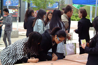 5月10日上午交通學(xué)院社團(tuán)聯(lián)合會在內(nèi)大南校區(qū)進(jìn)行了母親節(jié)感恩活動。同學(xué)們用一束康乃馨向老師們表達(dá)敬意,用一張張貼紙寫滿了對母親的祝福;同時還為同學(xué)們提供了一個錄視頻表達(dá)感恩的平臺,通過這個方式,說出想對母親說的話。雖然這個方式很簡單,但是眾多同學(xué)參與進(jìn)來,在母親節(jié)表達(dá)出他們對母親的愛和感恩。