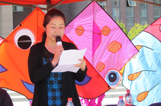 白托婭為放飛儀式致辭,她指出,本次手繪風箏大賽是我們認真落實校園文化建設的一項重要舉措,通過活動傳承和弘揚了民族文化,豐富了廣大師生課余文化生