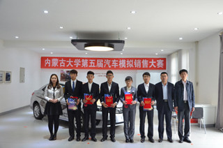 內蒙古大學“中升豐田杯”汽車模擬銷售大賽創(chuàng)立于2012年,由呼和浩特中升豐田汽車服務營銷有限公司冠名贊助,每年一屆,已經(jīng)成功舉辦了五屆。大賽由交 通學院學工處(團委)主辦,汽車工程系承辦,分初賽、復賽、決賽三個環(huán)節(jié),每屆歷時均超過一個月。比賽成功吸引了各學院大量愛好營銷的學生參加,通過大 賽,既為同學們普及了汽車相關知識,又提升了選手們的汽車銷售經(jīng)驗,豐富了校園文化生活。