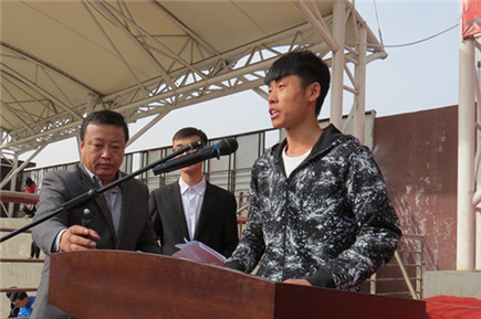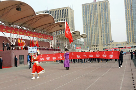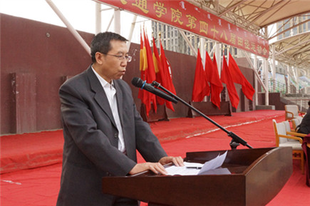 黨委副書記、紀(jì)委書記白托婭代表學(xué)院黨政領(lǐng)導(dǎo)致開幕詞。她說,一年一度的田徑運(yùn)動(dòng)會(huì)是學(xué)院貫徹“立德樹人”教育思想,全面落實(shí)素質(zhì)教育,響應(yīng)團(tuán)中央“走下網(wǎng)絡(luò)、走出宿舍、走向操場”倡議的重要載體,是對(duì)全院群眾性體育工作成果和師生員工運(yùn)動(dòng)水平的一次檢閱,也是對(duì)廣大師生員工競爭意識(shí)、團(tuán)隊(duì)精神、頑強(qiáng)意志的一次考驗(yàn),更是全院師生員工精神風(fēng)貌的一次全面展示,已經(jīng)成為校園生活的重要組成部分。高等學(xué)校作為國家高層次人才培養(yǎng)的重要基地,同學(xué)們的體質(zhì)與健康事關(guān)國家和民族的未來。她號(hào)召大家,要以此次運(yùn)動(dòng)會(huì)為契機(jī),繼續(xù)廣泛開展“陽光體育”,積極倡導(dǎo)“三走”,多種方式加強(qiáng)校園體育文化建設(shè),積極營造人人關(guān)心、人人參與體育活動(dòng)的氛圍,我們堅(jiān)信,在學(xué)校黨委和學(xué)院黨委的堅(jiān)強(qiáng)領(lǐng)導(dǎo)下,我院全體師生員工將以更加健康的體魄,更加昂揚(yáng)的姿態(tài),更加飽滿的熱情投入到學(xué)院各項(xiàng)事業(yè)的建設(shè)中來!