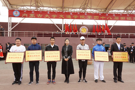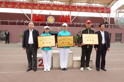 學(xué)院黨委副書記、院長柴金義為獲得學(xué)生團(tuán)體總分前八名頒獎(jiǎng) 學(xué)院黨委副書記、紀(jì)委書記白托婭為獲精神文明先進(jìn)集體頒獎(jiǎng)