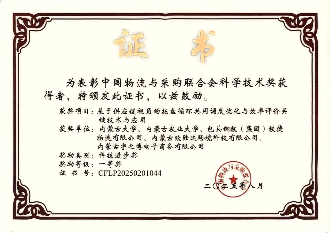 近日,中國(guó)物流與采購(gòu)聯(lián)合會(huì)(CFLP)正式公布了2025年度科學(xué)技術(shù)獎(jiǎng)評(píng)審結(jié)果。我院任建偉教授團(tuán)隊(duì)的研究成果“基于供應(yīng)鏈視角的托盤(pán)循環(huán)共用調(diào)度優(yōu)化與效率評(píng)價(jià)關(guān)鍵技術(shù)與應(yīng)用”榮獲科技進(jìn)步獎(jiǎng)一等獎(jiǎng)。成果主要完成人:任建偉、李成兵、陳春花、孫哲、徐鐵、李一川、閆振英、霍月英、張鵬、魏中華、喬曉波。